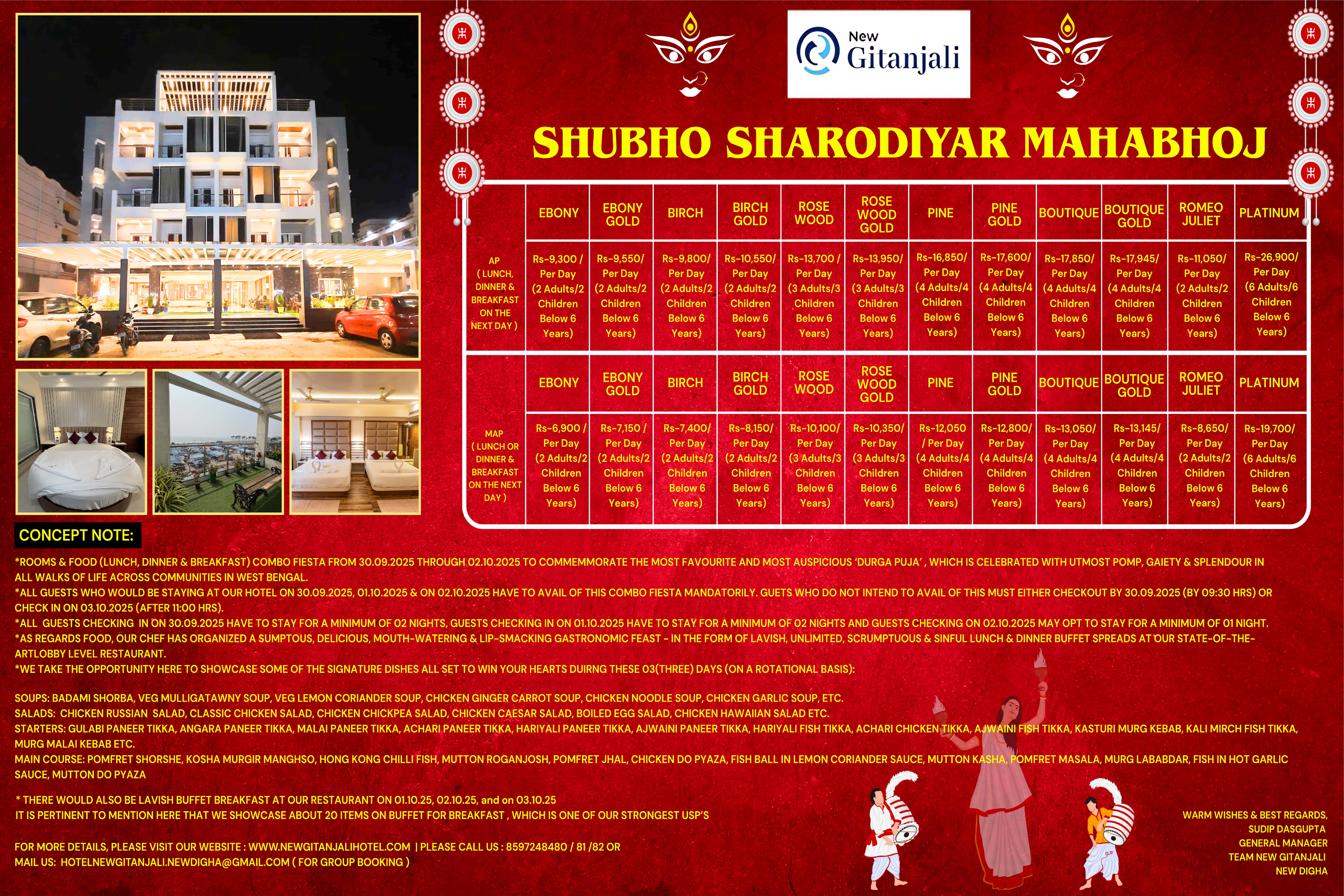 At Hotel New Gitanjali, enjoy modern comfort just steps from New Digha Sea Beach. From cozy rooms to fine dining, 24×7 front desk, and complete room service — everything is designed to make your stay relaxing and memorable. Perfect for families, couples, and corporate travelers.